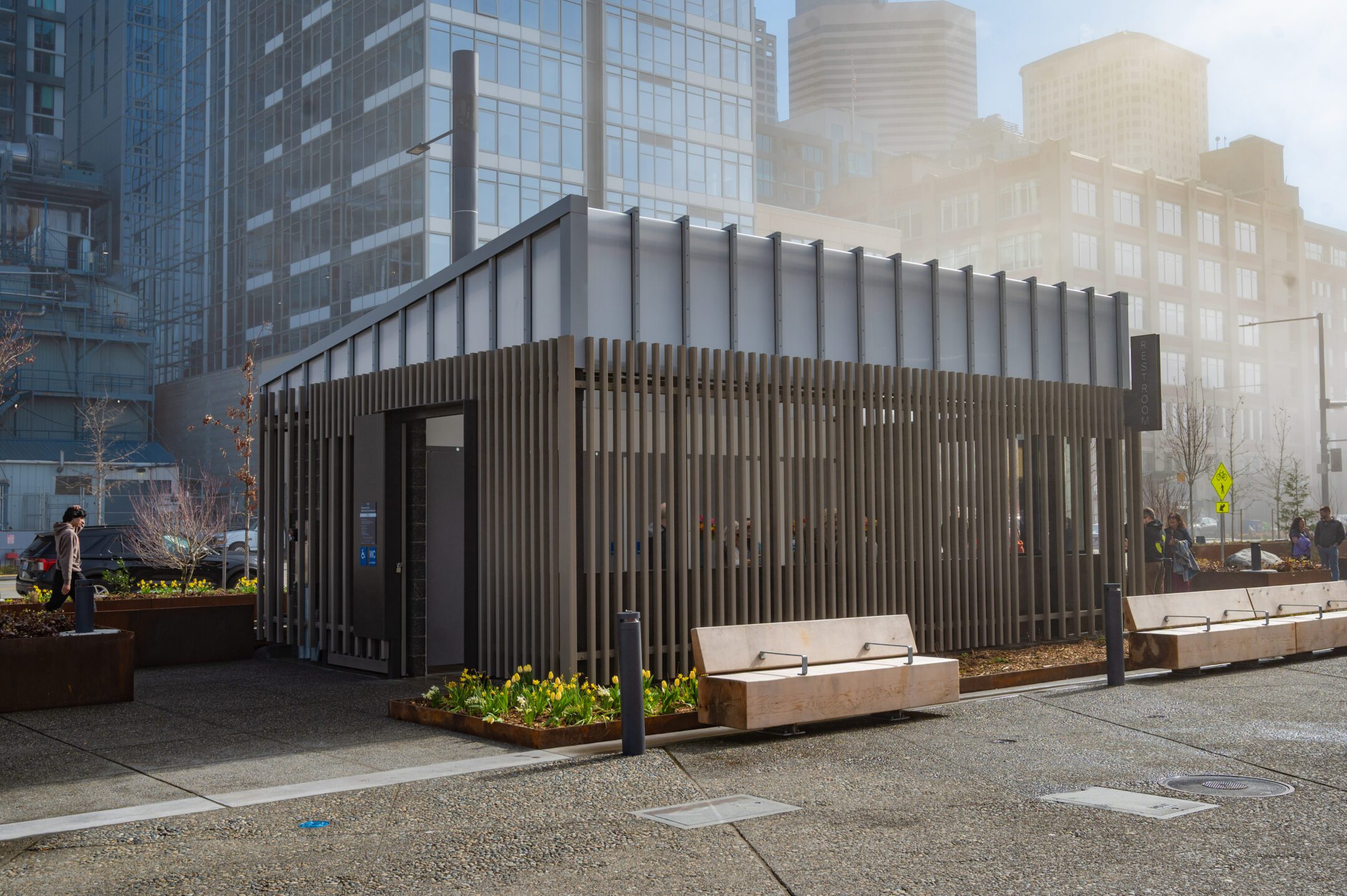 Waterfront Park’s new modern public restroom on Park Promenade between Union Street and University Street. Photo by Hannah Te.