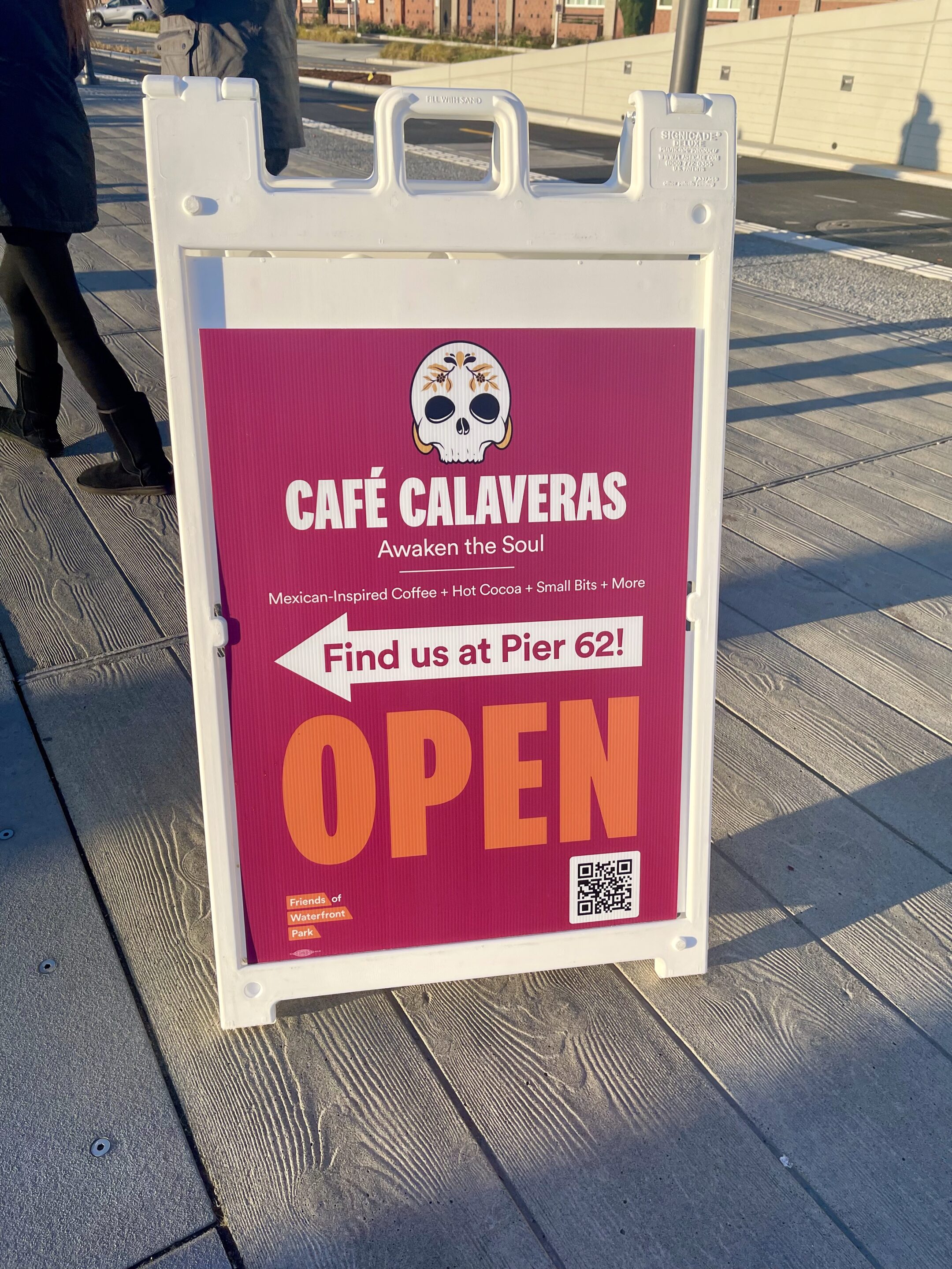 If you’ve stopped by a firepit social this winter season, you likely caught a glimpse of a vibrant pink and orange sign reading “cafecito & chisme.” That’s Café Calaveras’ recognizable tagline. What started as a pop-up on Pier 62 is now gearing up for a brick-and-mortar space, all thanks to the hustle, heart, and vision of its founder, Clarissa Griego.
