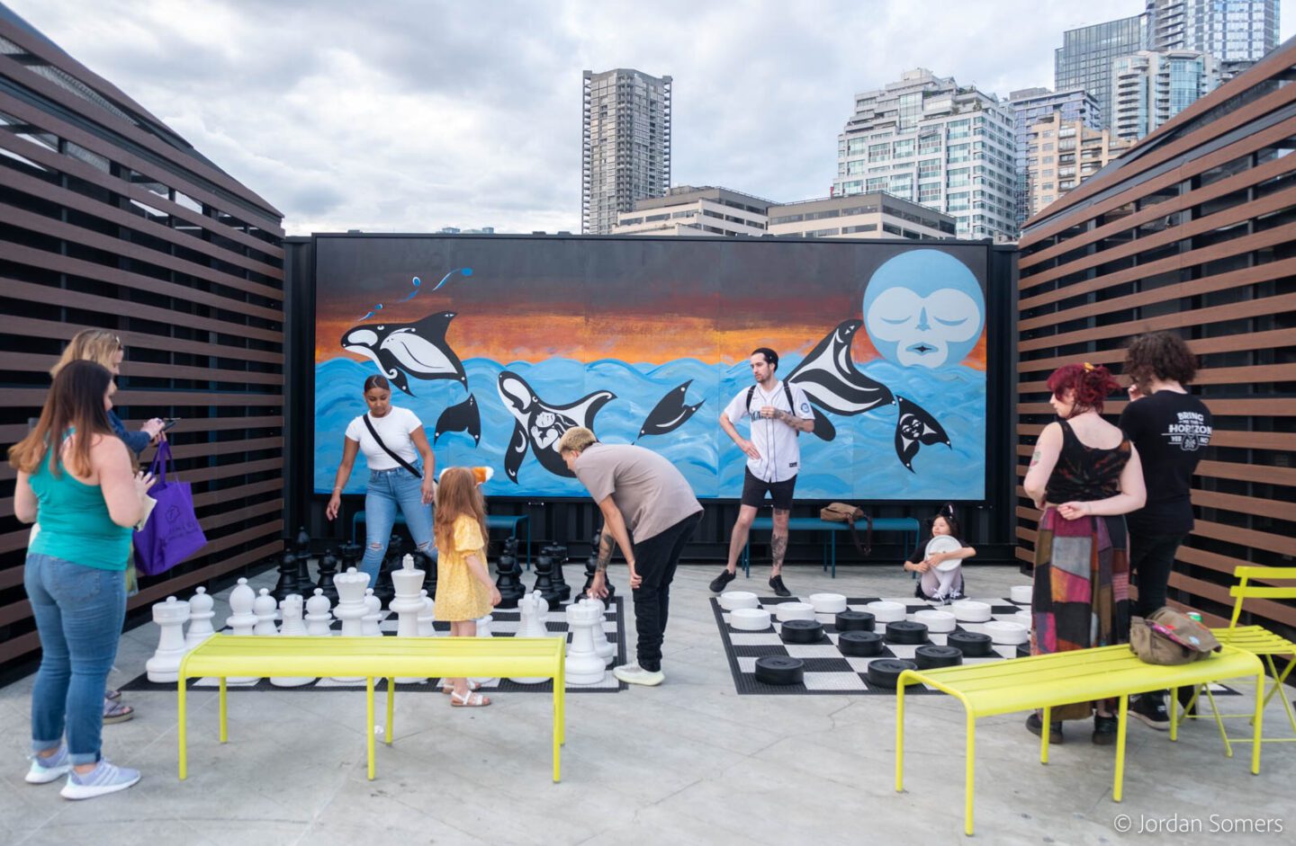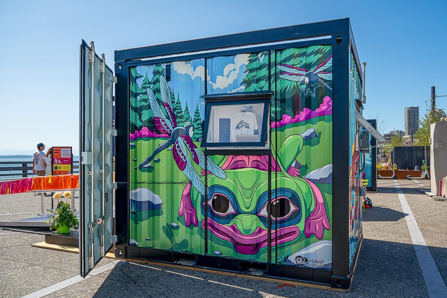 Murals by Sarah Folden (Cowlitz) found on our Promenade Pop-up kiosks. Photo by Growing Boy Media.