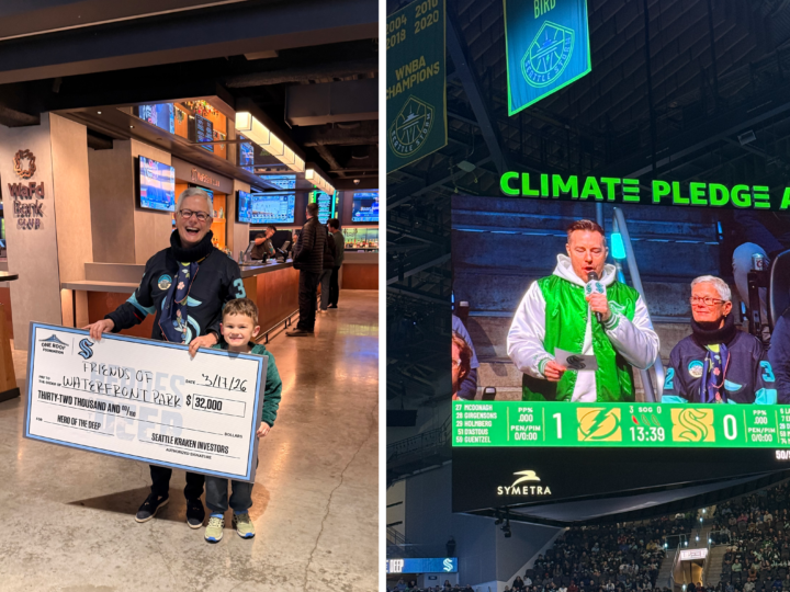 Dual year Hero of the Deep honorees from Friends of Waterfront Park is not a coincidence; it reflects the people who make this place what it is. We are grateful to the Seattle Kraken and One Roof Foundation for recognizing the work happening right here on the waterfront, and even more grateful to Maggie and Jordan for showing us what it looks like to show up for community, every single day.