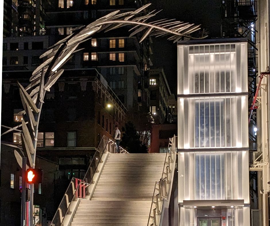 Overlook Walk is a stunning engineering marvel, offering a world-class design that creates the first-ever direct pedestrian connection between Pike Place Market and the waterfront. Elevated above the Aquarium’s Ocean Pavilion, this beautiful path features cascading steps, gathering spaces, and plenty of seating, all with breathtaking 360-degree views of Waterfront Park, Downtown Seattle, and where the mountains meet the sea!
