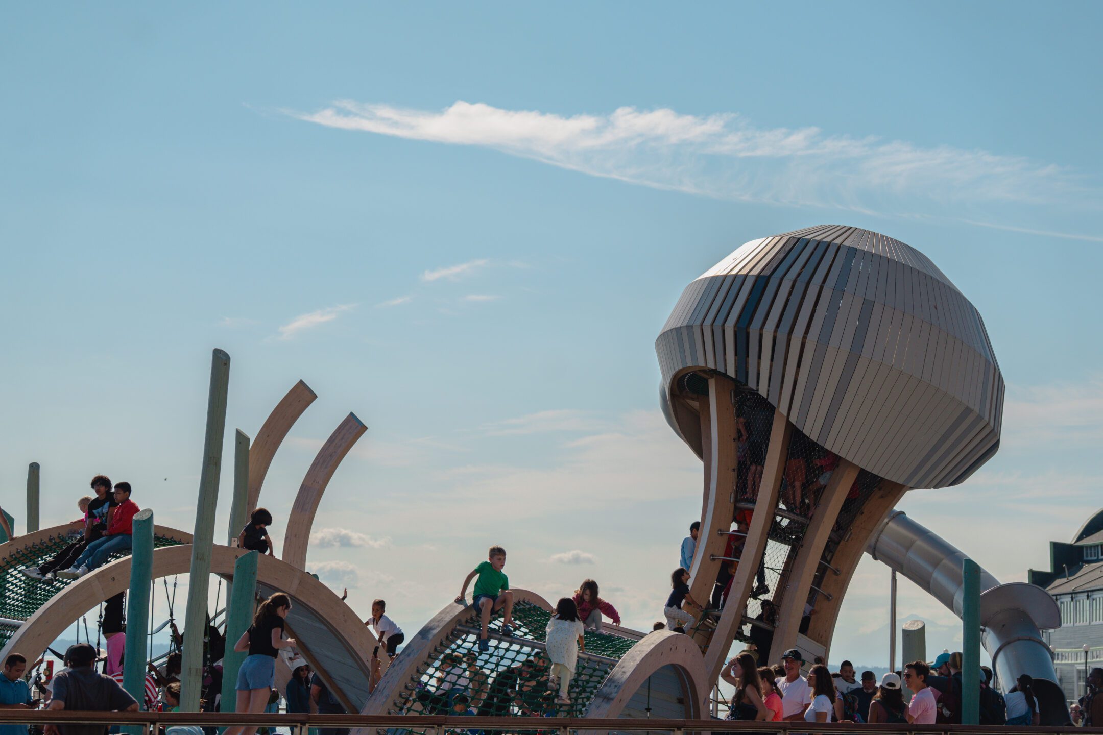 Pier 58 offers a dynamic space for everyone to come together. With its versatile layout, it’s the perfect spot to gather for free events, play on a one-of-a-kind playground, relax under trees, or take advantage of the large lawn and make it a social day with friends.
