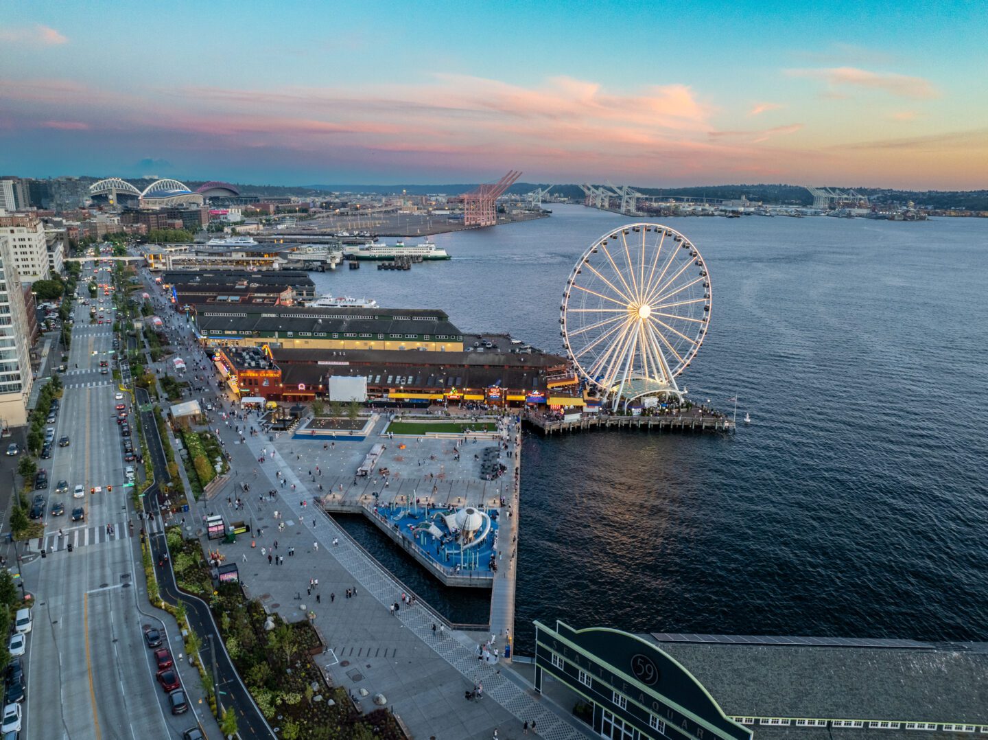 Waterfront Park is a constellation of public spaces comprised of Pier 62, Overlook Walk, Pier 58, Park Promenade, Pioneer Square Habitat Beach, and Railroad Way South.